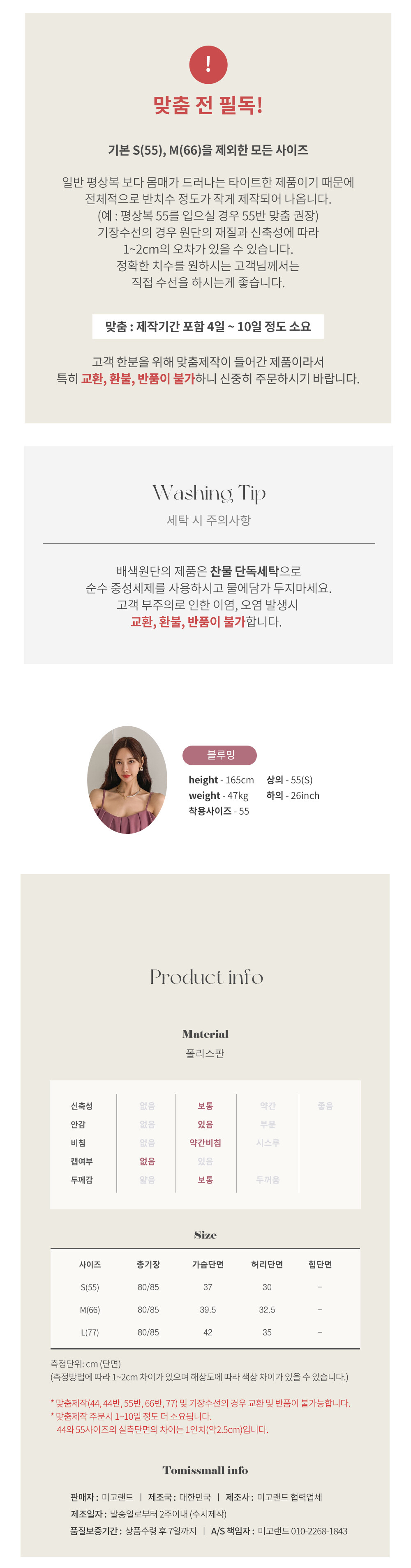 일반 의류에 비해서 반사이즈 정도 작게 나왔어요.