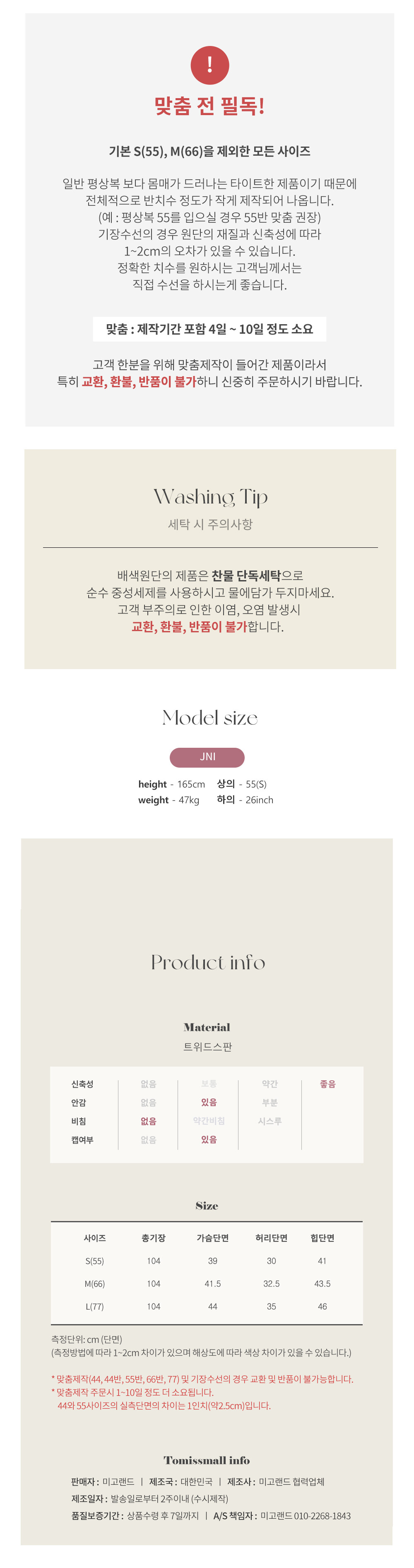 일반 의류에 비해서 반사이즈 정도 작게 나왔어요.