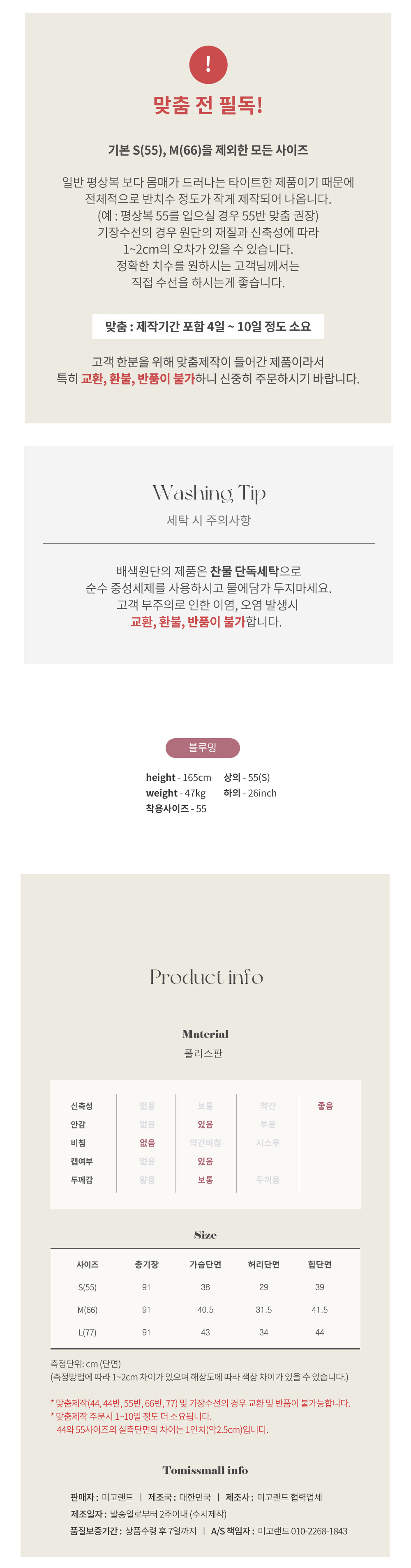 일반 의류에 비해서 반사이즈 정도 작게 나왔어요.