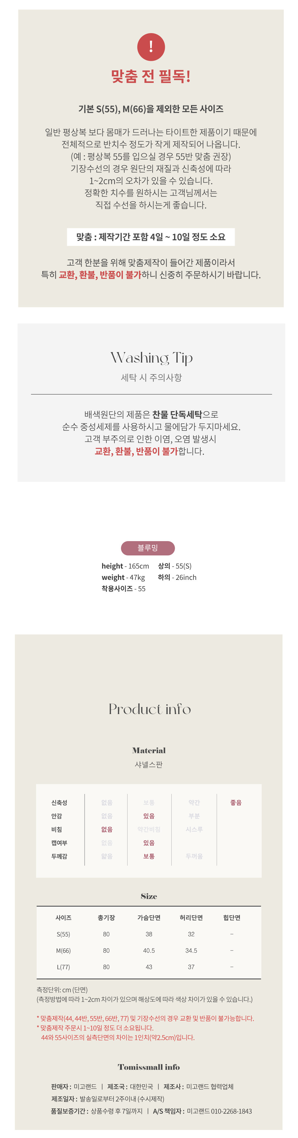 일반 의류에 비해서 반사이즈 정도 작게 나왔어요.