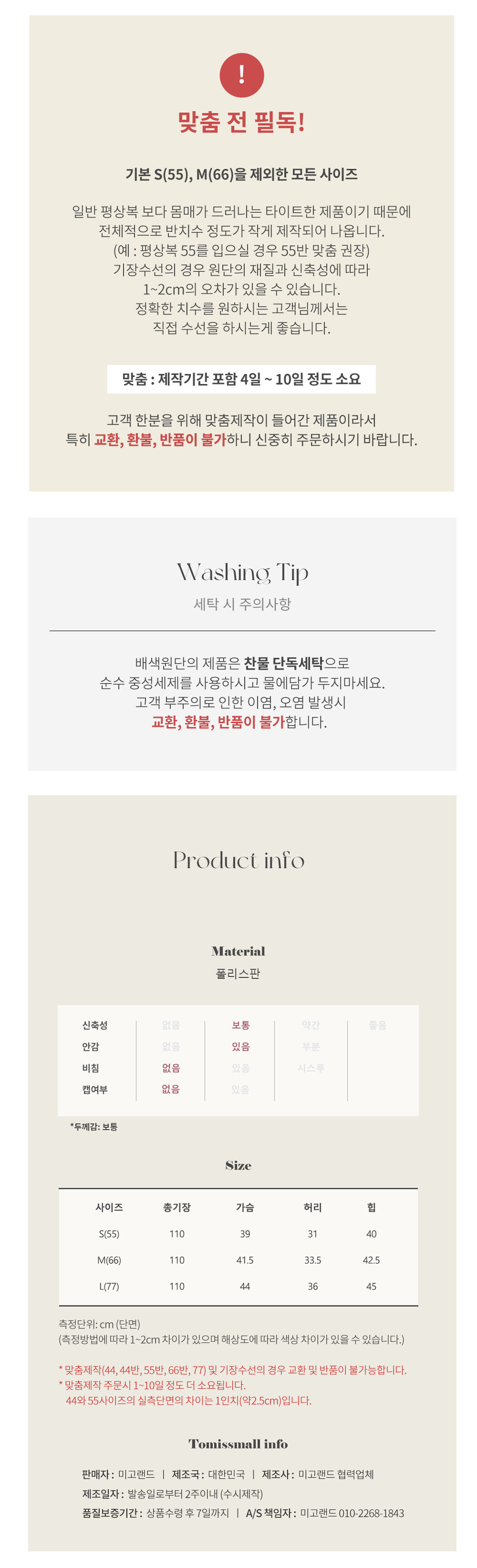 일반 의류에 비해서 반사이즈 정도 작게 나왔어요.